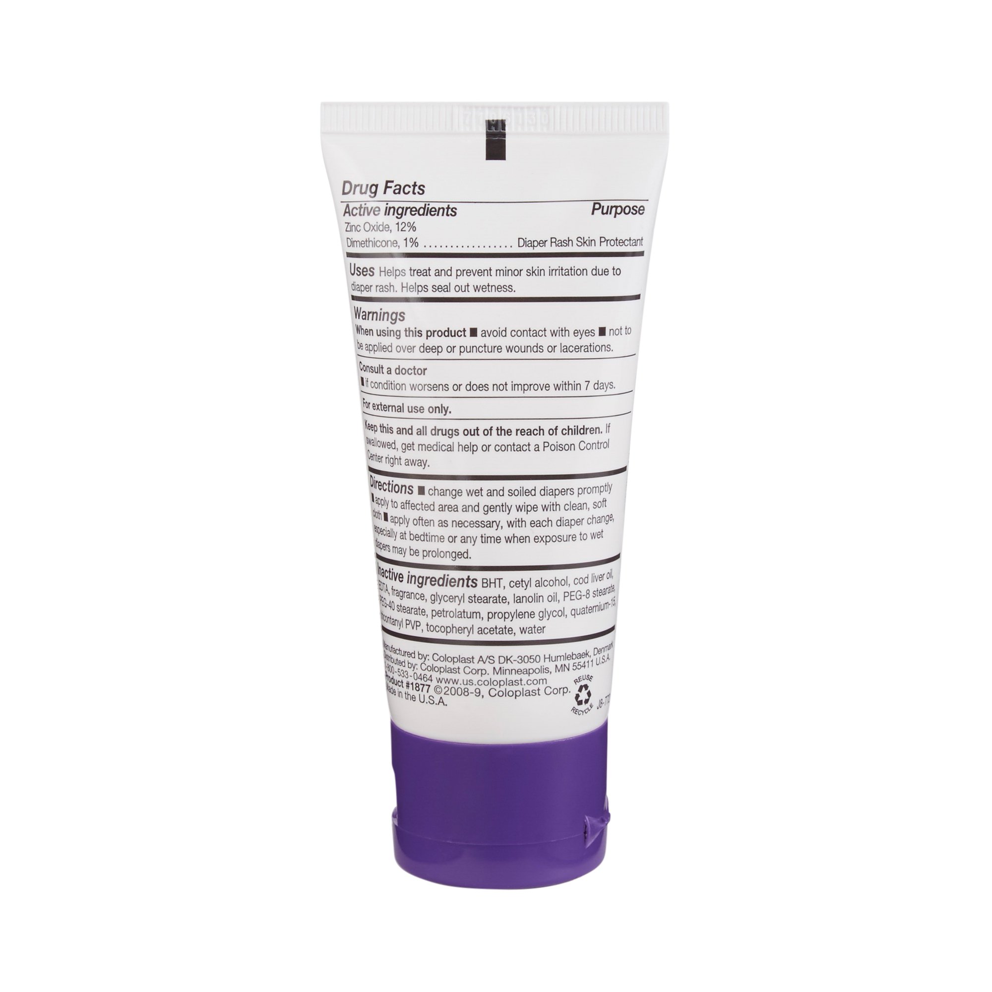 • This 2 oz tube of barrier cream has the active ingredients of zinc oxide and dimethicone