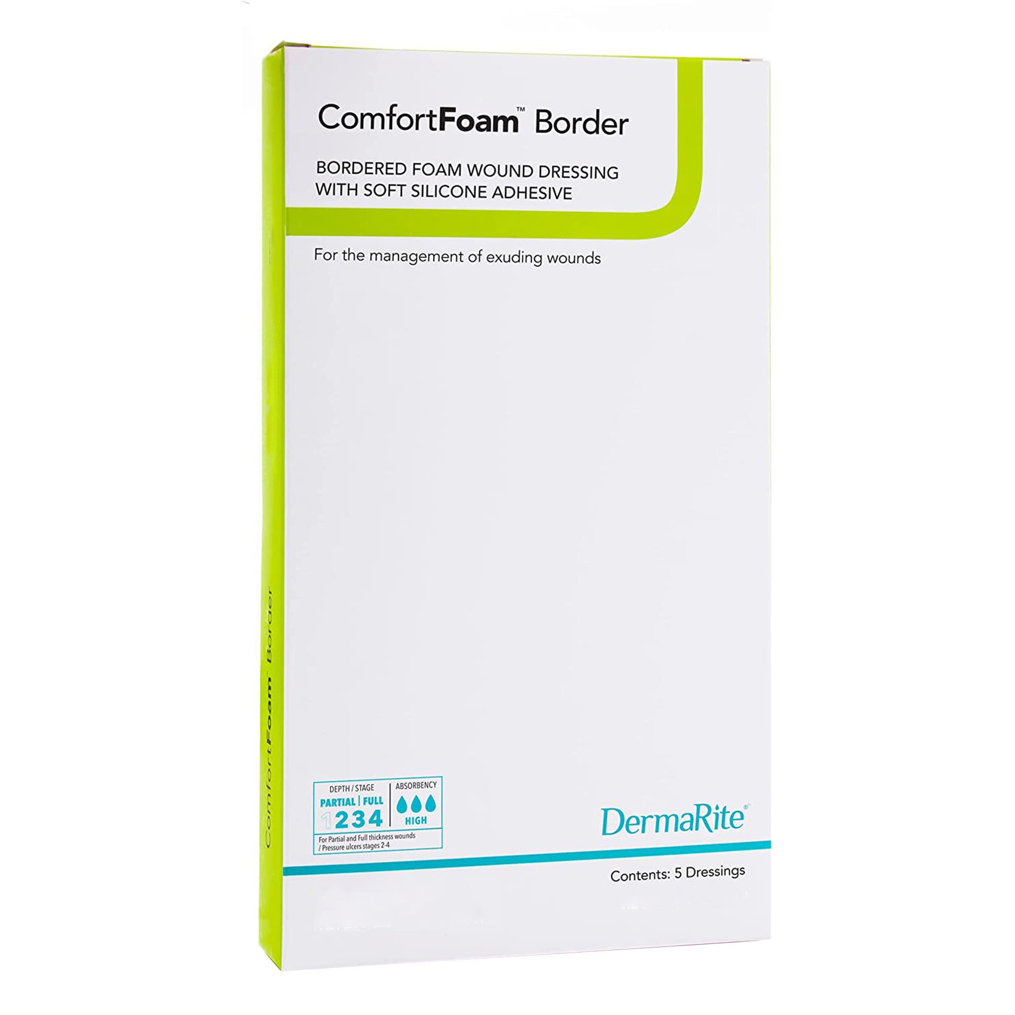 • The 7- x 7-inch DermaRite ComfortFoam border facilitates faster and proper healing of wounds