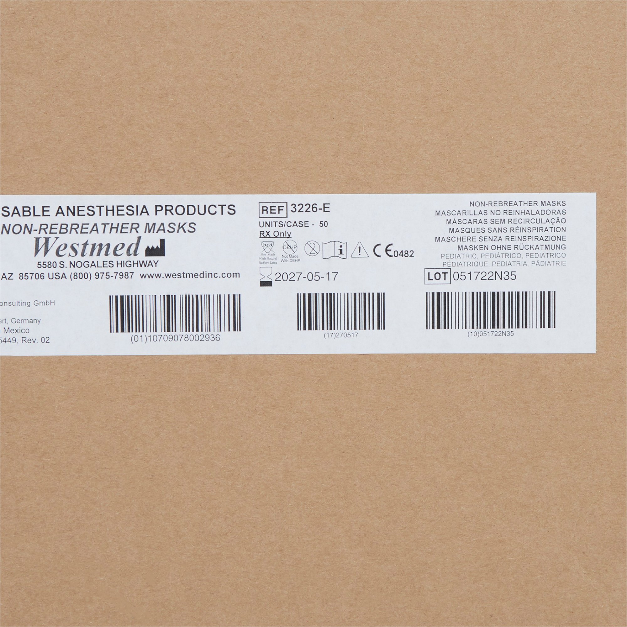 MASK, OXY HI CONC N/REBR PED ELONG (AMR) (50/CS)