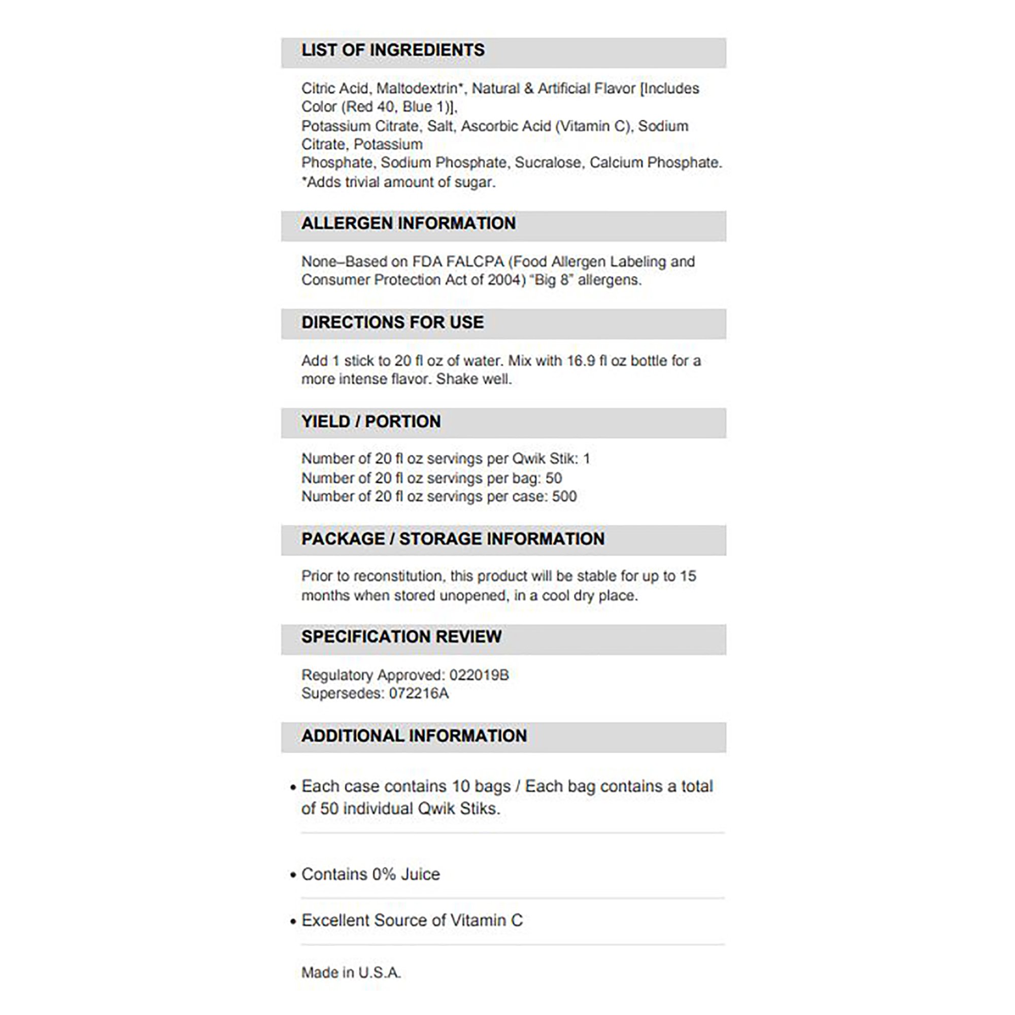 Sqwincher® Quik Stik® Zero Fruit Punch Electrolyte Replenishment Drink Mix, 0.11 oz. Packet